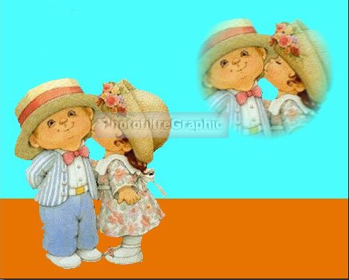 18.Placez le curseur dans le bleu qui est entre les 2 cous des enfants, il prend la forme d'un rond