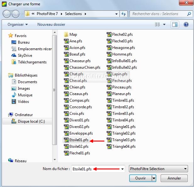 5.Dans la fenêtre Charger une forme, sélectionnez l'Etoile01