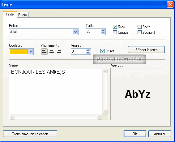 7.N'hésitez pas à aller dans l'onglet Effets pour mettre, par exemple, un contour d'une autre couleur,une ombre portée