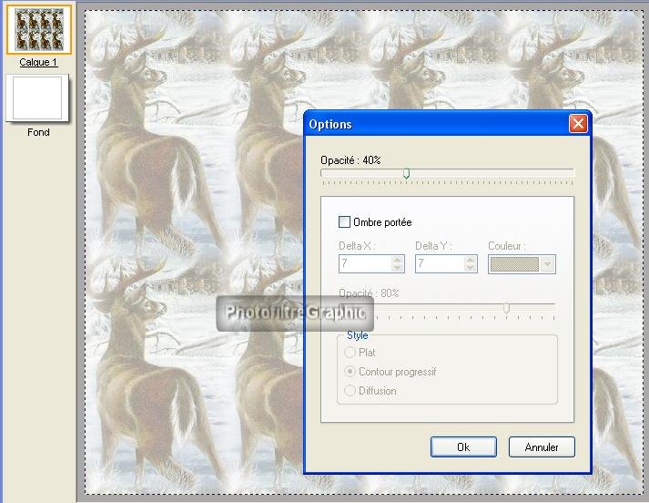 18.Clic droit sur la vignette du calque 1 puis coulissez par exemple à 40%