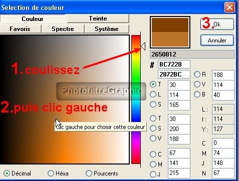8-1.Dans la fenêtre Sélection de couleur ci-dessous,coulissez le petit curseur pour choisir une couleur