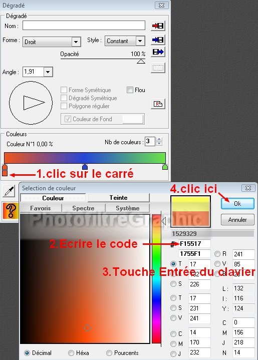 14 - 1.Clic sur le petit carré pour ouvrir la fenêtre "Sélection de couleur"