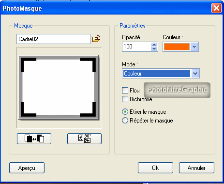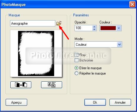 3.Dans la fenêtre PhotoMasque,cliquez sur l'icône jaune du haut pour choisir un masque