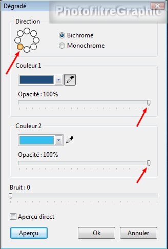 5a. Menu Filtre > Couleur > Dégradé: Direction Bas gauche. Bichrome