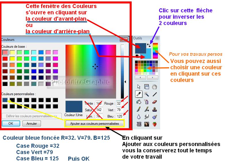 1.Mettez en couleur d'avant-plan le Bleu foncé R=32 V=79 B=125