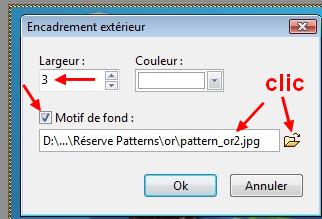 31.Pour faire l'encadrement: Menu Image > Encadrement extérieur. Largeur=3 Motif de fond = Pattern_or2 fourni