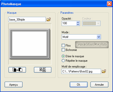 1.Dans le dossier Réserve Masks qui est dans les Fournitures pour Photofiltre créez le sous-dossier Masques de Photobidouille