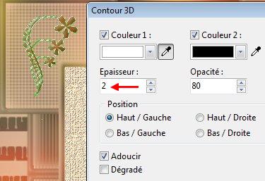 41. Menu Filtre > Esthétique > Contour 3D. Blanc/ Noir. 2 / 80 . Haut/ Gauche