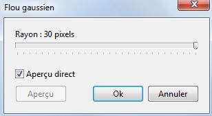 6.Menu Filtre > Effet d'optique > Flou gaussien . Rayon: 30 pixels (ou 12 pixels sur d'anciennes versions)
