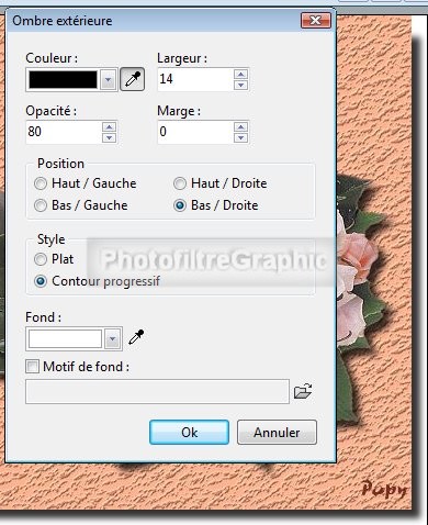 40. Menu Filtre > Esthétique > Contour progressif sans cocher Extérieur,l'ombre sera à l'intérieur