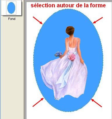 48.Comme la forme ovale n'est pas facile à sélectionner,il faut sélectionner le blanc qui est autour avec la baguette magique puis inverser cette sélection:Menu sélection > Inverser
