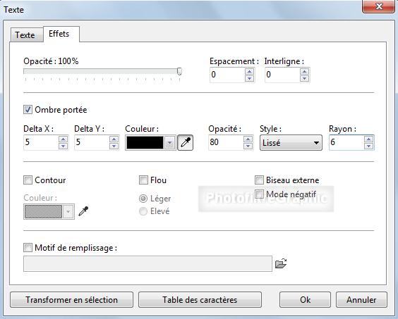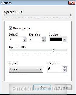 27.Cochez Ombre portée:x = 15 y = 15 Couleur = noir Opacité = 80%