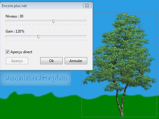 18.L'arbre est un peu flou: Menu Filtre > Netteté > Encore Plus net