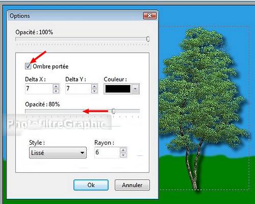 20.Placez une ombre: Clic droit sur la vignette de l'arbre > Cochez Ombre portée