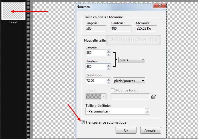 3.Remarque: Si vous vouliez un fond transparent, il faudrait cocher Transparence automatique