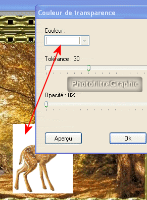 47.Donc avec le curseur / pipette vous cliquerez pour choisir la couleur que vous voulez rendre transparente
