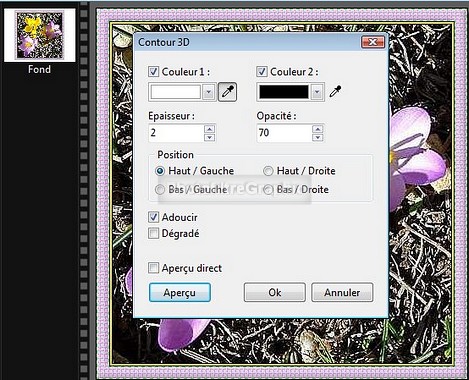 17a. Pour donner un léger bombé: Menu Filtre > Esthétique > Contour 3D. Couleur 1=Blanc. Couleur 2=Noir. Epaisseur=2.