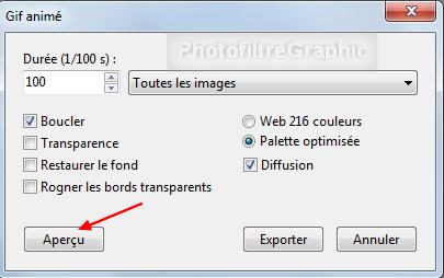 11.Cochez Palette optimisée au lieu de Web 216 couleurs pour obtenir une meilleure qualité