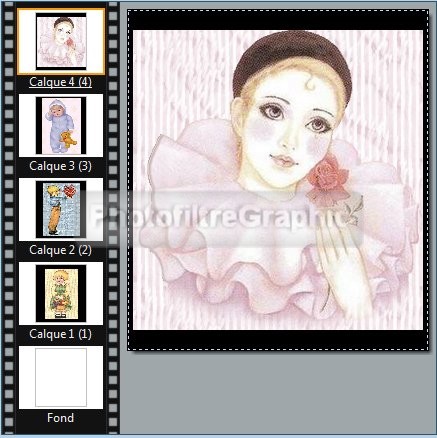 4.Les dimensions de ces 4 images étant très différentes,le plus simple va être de les placer sur un support identique en prenant la plus grande largeur (290) et la plus grande hauteur (330) et en leur ajoutant 10 si on ne veut pas que certaines touchent les bords