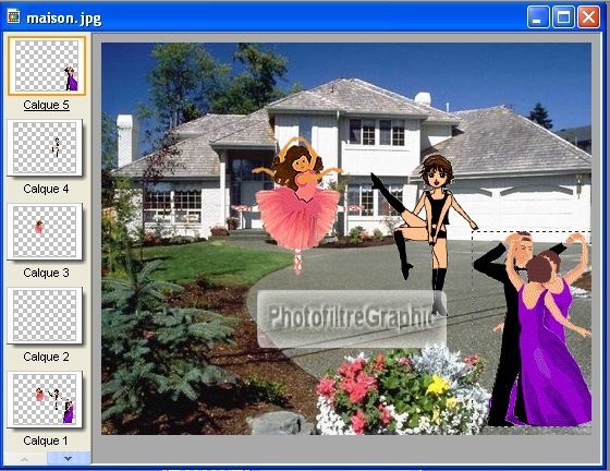 7.Copier-coller le calque 1 de la danseuse sur la maison