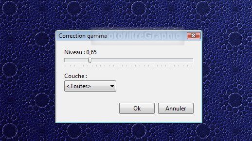 12.Menu réglage > Correction gamma. Niveau = 0,65