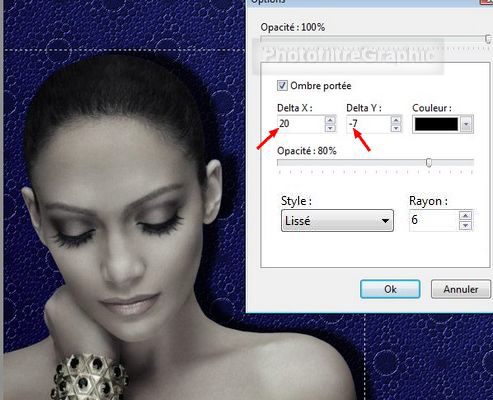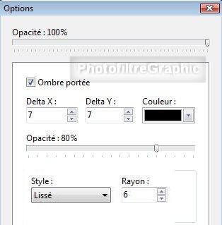 25.Double-clic sur la vignette . Cochez Ombre portée. X=20 Y=-7