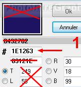 2.Mettez en couleur d'avant-plan le bleu foncé R=30 V=18 B=99