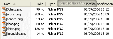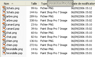 9.Quand tous les fichiers sont faits vous avez,en alternance,les fichiers d'origine et les nouveaux fichiers au format png (déplacez ou supprimez ceux d'origine car dans l'explorateur d'images,ils vont encombrer car leur fond ne sera pas transparent)