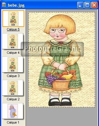 4.Pour ajouter la fillette:Menu Calque > Nouveau > Ouvrir en tant que calque