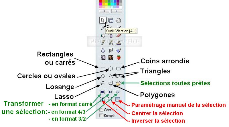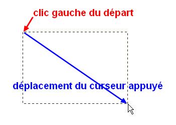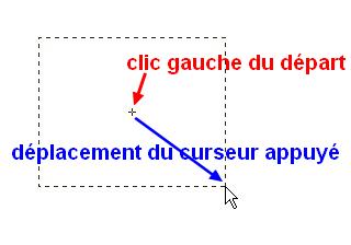 7.Pour tracer une Sélection avec les formes géométriques, cliquez sur votre image et déplacez la souris en tenant le clic gauche enfoncé puis relachez quand les dimensions vous conviennent, en veillant aux Réglages des lignes 16 et 17 ci-dessous