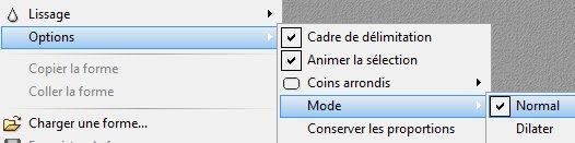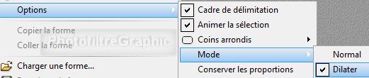 19. Avec le Mode Dilater, la sélection se crée autour du point de départ défini par un clic gauche à l'endroit voulu et en déplaçant la souris, clic gauche appuyé