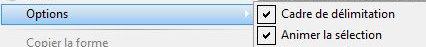 15. Dans les Options, cochez Cadre de délimitation et Animer la sélection pour qu'elle bouge