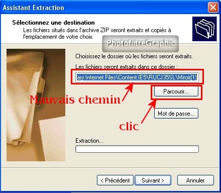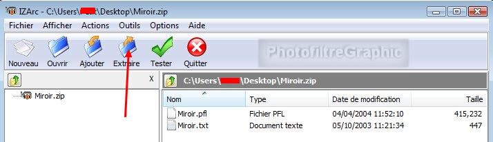 7.Cette fenêtre s'ouvre. Cliquez sur Extraire