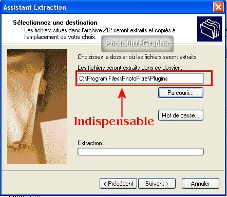 15.Vérifiez que le chemin pour Extraire dans le dossier Plugins soit bon sinon,recommencez