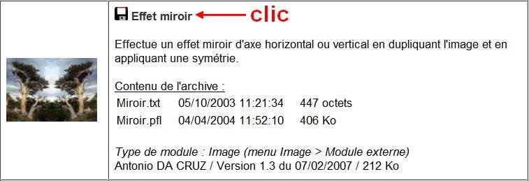 2.Exemple avec le Plugin Miroir que vous trouverez sur le site de PhotoFiltre ici dans la rubrique Plugins