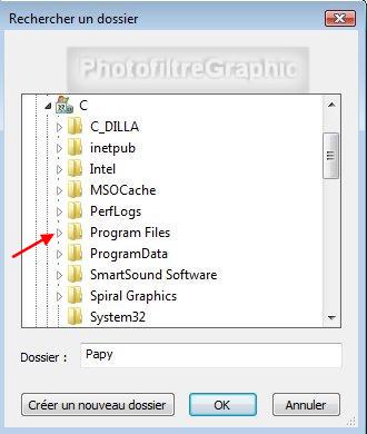 11.Cliquez sur la pointe devant Program Files (ou Programmes)