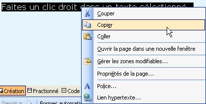 Faites un clic droit dans un texte sélectionné puis un clic gauche sur Copier