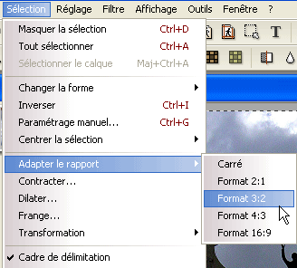18.Menu Sélection > Adapter le rapport > Format 3/2